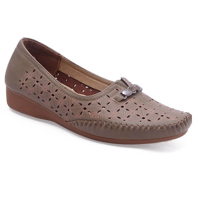 Golden Artificial Leather Moccasin For Women